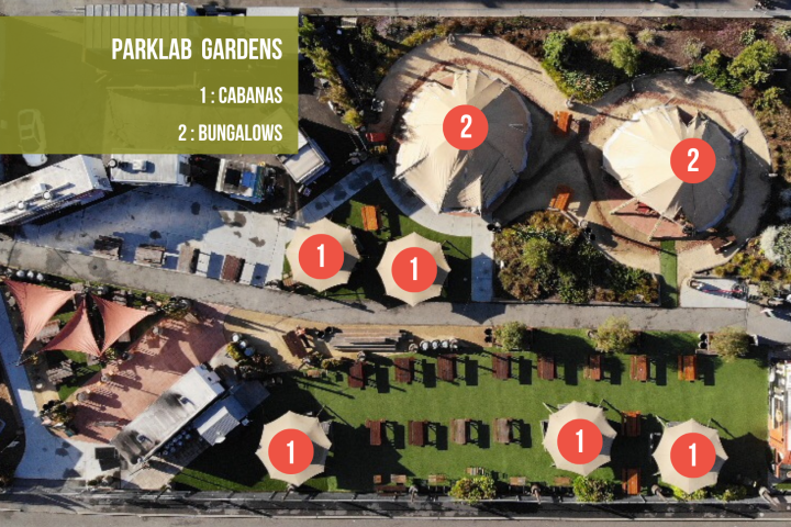 • Our Cabanas are perfect for groups of 12-15 people sitting and standing.